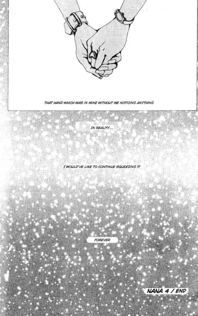 e eu não aguento mais. se essa mulher morrer, eles vão nos avisar? a gente vai ficar sabendo? me pergunto se em algum momento nana voltará. ou talvez eu nem espere algo tão bom assim. mas será que em algum momento, a yazawa voltará a produzir alguma coisa? gostei tanto de tudo que ela fez até agora. mas são 12 anos só com migalhas… tudo bem. eu te autorizo a demorar o tempo necessário, yazawa. mas por favor, volta.